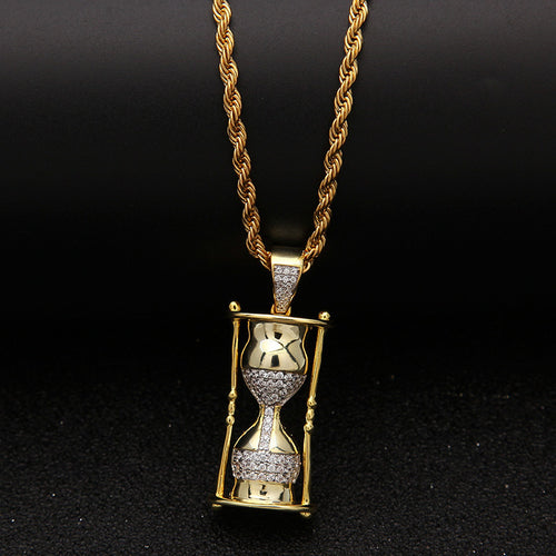 Fashion Hourglass Pendant Necklace 2 Colors AAA Zircon Iced Out Mens Necklace Street Style Hip Hop Jewelry