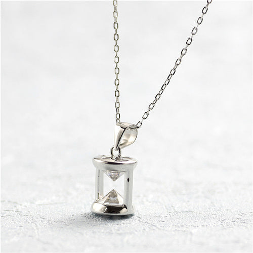Flyleaf 925 Sterling Silver Hourglass Cubic Zirconia Necklace Women Fashion Chain Fine Jewelry Simple Necklaces & Pendants